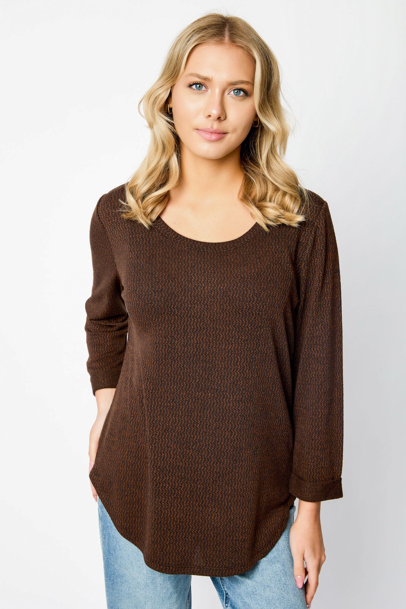 Knitted 3/4 Sleeve Scoopneck Sweater